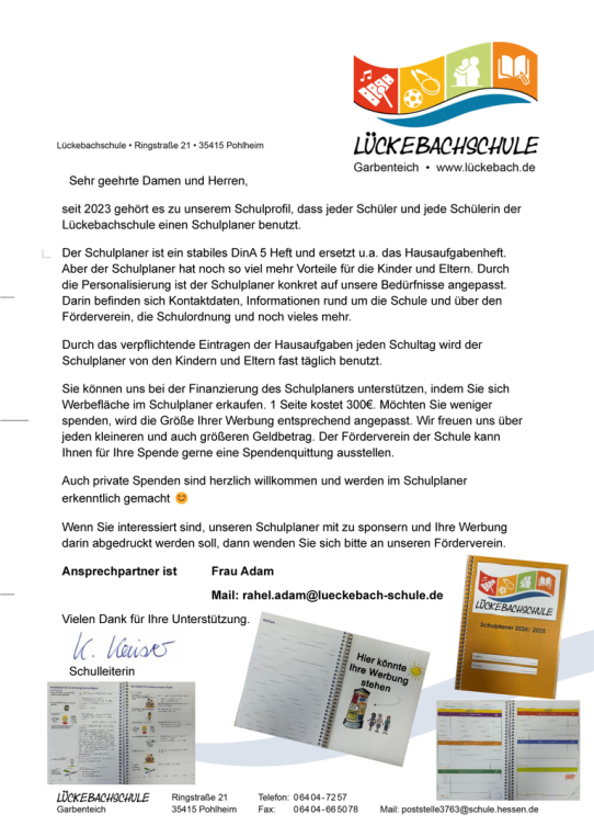 Wir benötigen Ihre Unterstützung für unseren Schulplaner